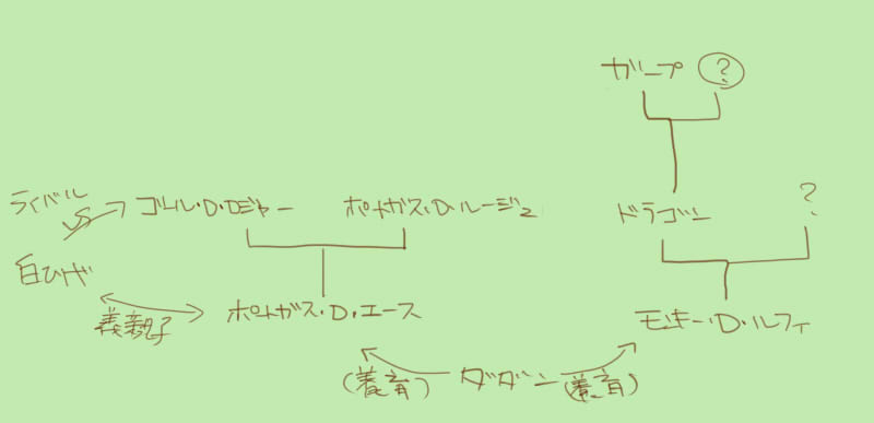 気になるのはダダンという女性です。ドラゴンとの関係は不明だけど、ガープとは確実になんかの関係がある。